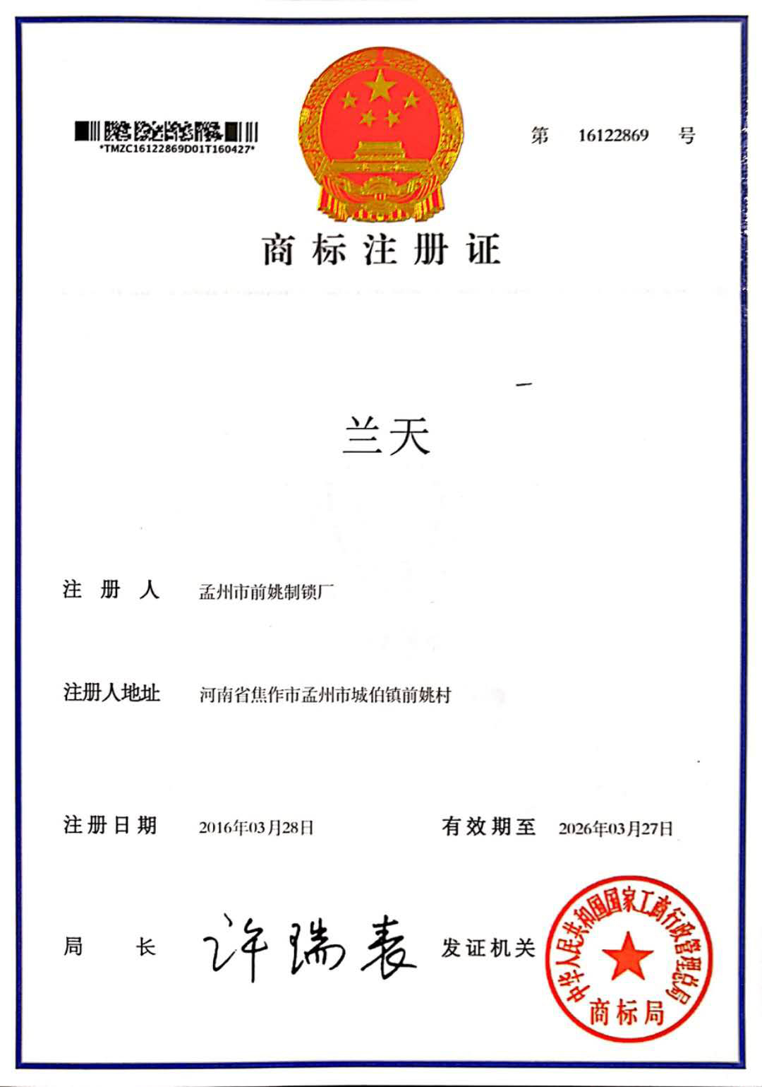 商标注册证